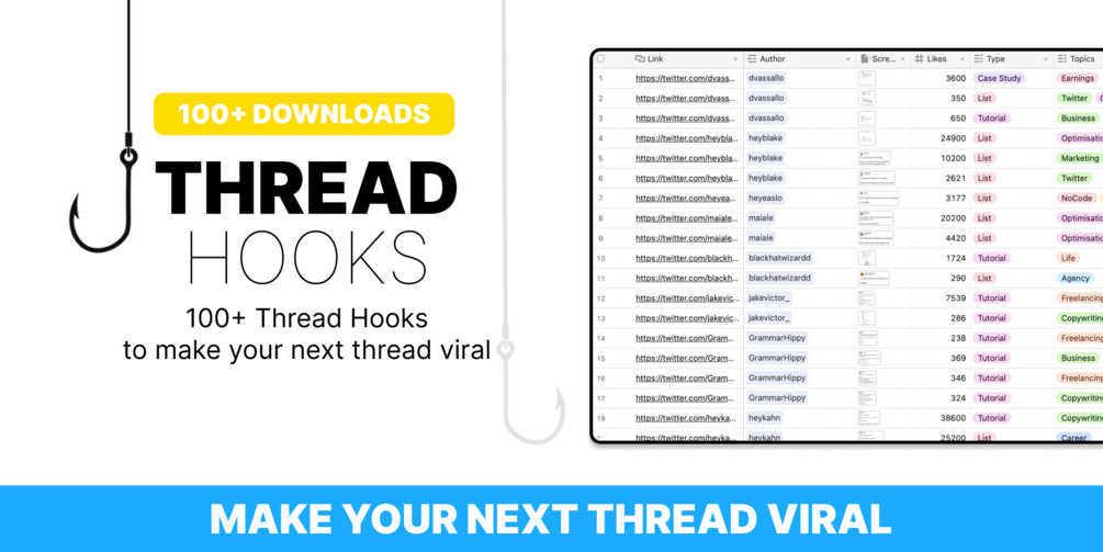 You will get all the past listed tweets/threads + all the the future ones. All the tweets are on an Airtable file that you can also use to write your own versions and to plan your calendar.